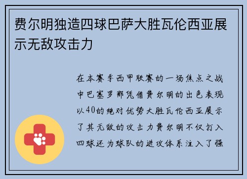 费尔明独造四球巴萨大胜瓦伦西亚展示无敌攻击力